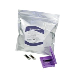 Before the sterilization process of medical equipment and surgical instruments, there is a prewashing procedure. By the means of this procedure, blood residues remaining on especially surgical instruments that cause cross infection is surely cleaned. After Washing/Disinfection steps, there might be some residues or contaminants left in varying colors that can be observed. It is very essential to identify if the residue is of blood or corrosion, in order to carry out sterilization properly or otherwise to dispose the equipment. This blood residue test developed in our laboratories is an indicator which changes color only with a specific enzyme in the blood. By using this test, it is very easy to identify trace amounts of blood. Without a need of long incubation time, our test is able to identify up to~0.1micrograms of blood in residue, faster than any other test methods, that is as short as 10 seconds